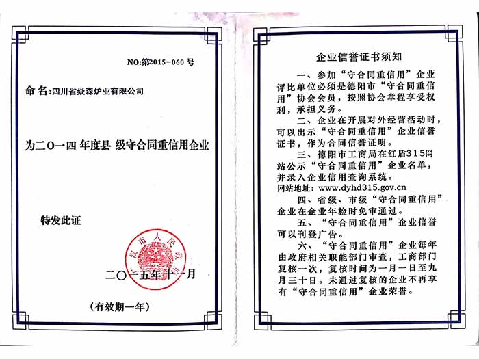 四川省焱森爐業有限公司注冊資金1200萬元,生產車間近1萬平方米,是一家集生物質爐研發、設計、生產、銷售、服務、技術咨詢于一體的國家高新技術企業。公司技術力量雄厚,生產設備齊全,工人技術熟練,所有產品嚴格按照國家相關標準及ISO9001:2008質量管理體系實行模具化、規范化生產,年產能力達15萬臺以上。公司擁有建全的14001環境體系認證及18001職業健康安全體系認證。我公司擁有自己的知識產權及自主品牌“焱森”,是國家高新技術企業,擁有54項專利。